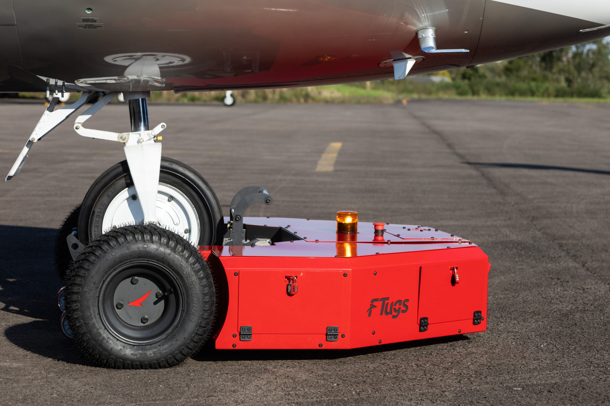 Equipado com faróis para operações noturnas e Giroflex para garantir segurança durante a movimentação das aeronaves.